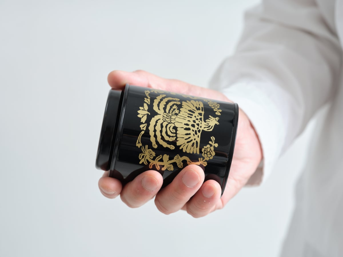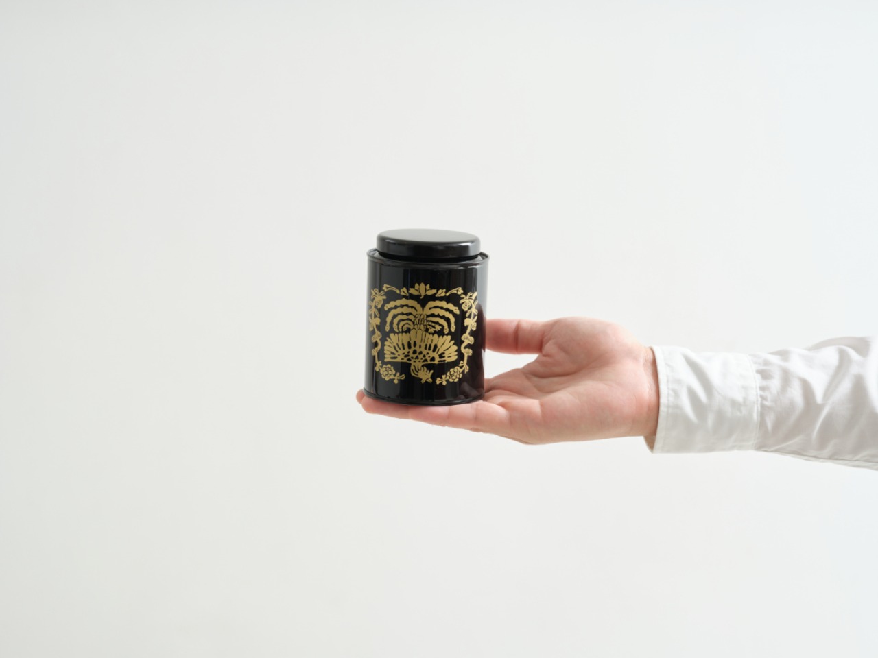 艶のある黒・白の缶に、日本の伝統色を用いてデザインを表現しました。
